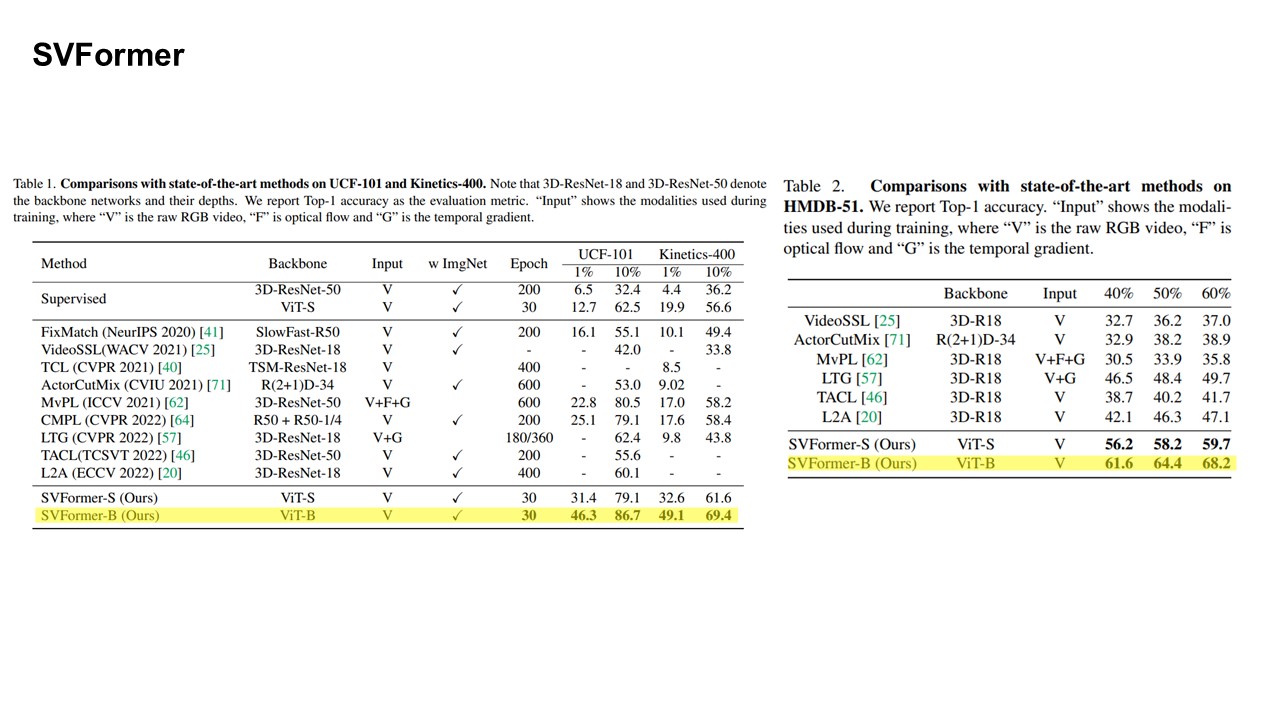 발표를 위해 준비했던 PPT Slides를 사용해 SVFormer, CVPR'23를 keyword로 정리해 리뷰합니다.
