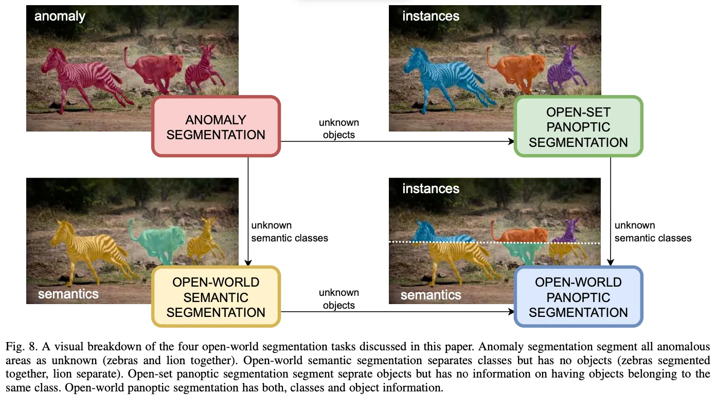 이 문제는 단순히 알려진 객체와 모르는 객체를 구분하는 anomaly segmentation을 넘어, 모르는 객체들을 개별적으로 인스턴스 단위로 분할하고, 새로운 의미적 범주로 통합하는 것을 목표로 합니다.
